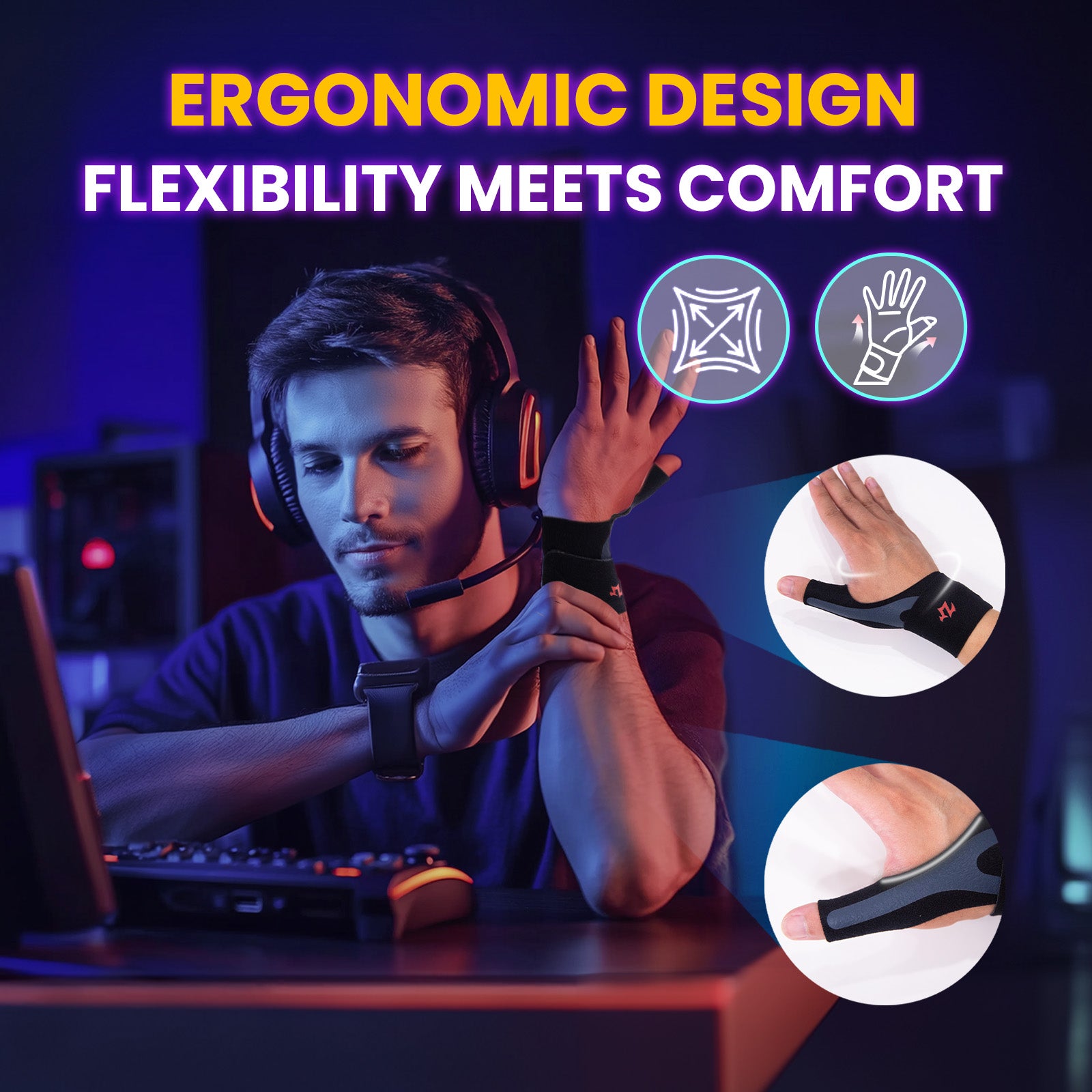 Our wrist brace is designed with gamers in mind, offering precise support to alleviate pain and discomfort and experience longer and pain-free gaming marathons. Keep your focus on the game, not the pain.